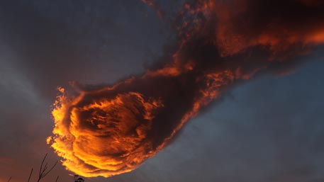 Снимки были сделаны на рассвете, когда свет в облаке рассеялся и придал ему столь впечатляющую окраску.