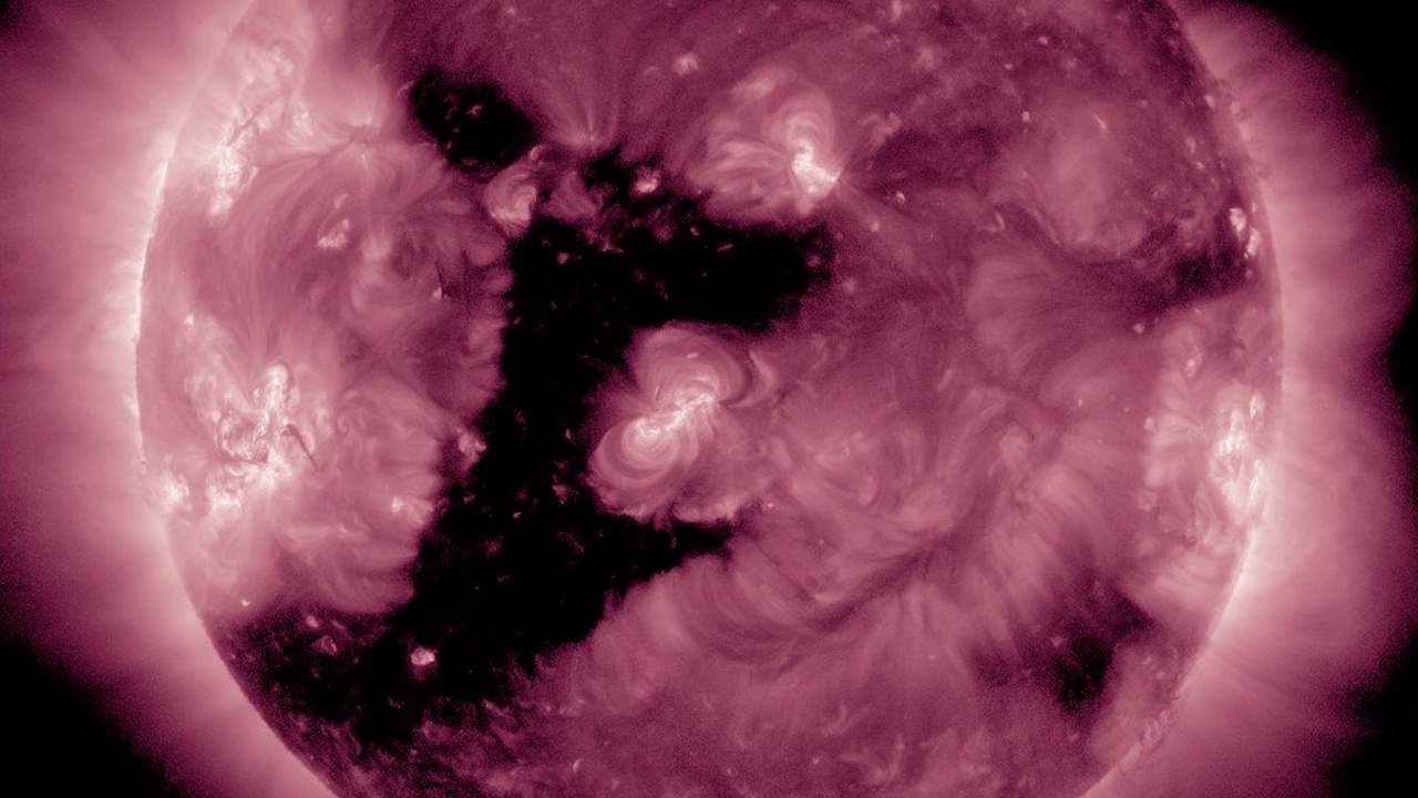Крупную корональную дыру необычной формы обнаружили на Солнце. Об этом сообщили в пресс-службе ИКИ РАН.