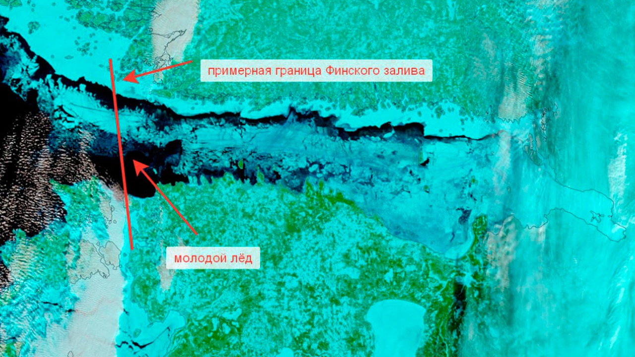 По словам специалиста, в горле залива лед был еще молодым и тонким и почти прозрачным. Поэтому его трудно увидеть на спутниковых снимках.
