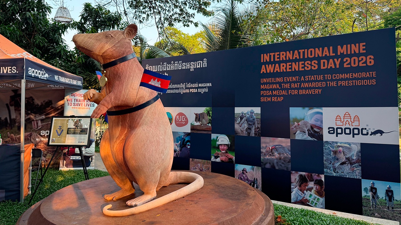 Памятник открыли в Международный день просвещения по вопросам минной опасности. В Камбодже крысу Магаву считают символом борьбы страны с кровавым наследием войны.