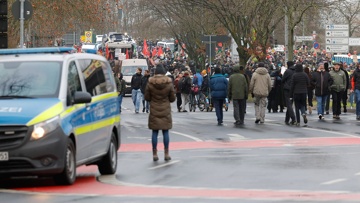 Bild: участники съезда АдГ прорываются через баррикады в Гисене