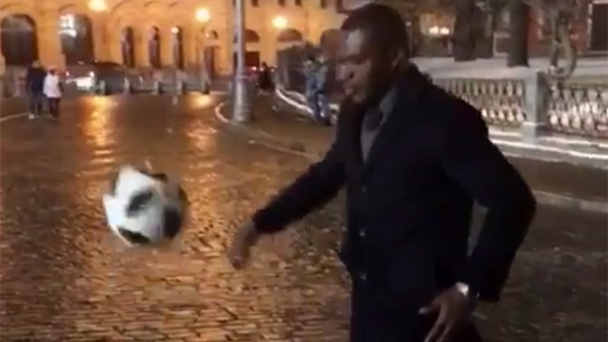 Замерзший Марсель Десайи почеканил мяч на Красной площади