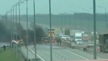 На трассе Ростов - Таганрог после ДТП загорелся бензовоз